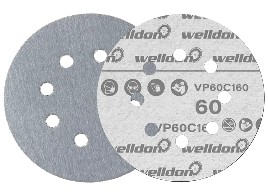 Welldon offered Various types to meet different application needs. Velcro discs are served with a total of 10 a different types of silicon Carbide , Aluminum Oxide ,Zirconium and Cecramic abrasives,Generally from 24 to 400 grit ,from 100mm diameter to 230mm diameter, with 8 different hole types.