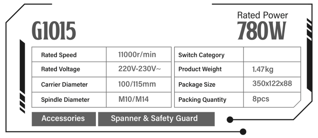 The WELLDON G1015 Angle Grinder is a powerful 780W tool built for efficient cutting and grinding applications. With a high 11000 r/min speed and a durable ergonomic body, it delivers strong performance, smooth operation, and reliable control for professional and industrial use.