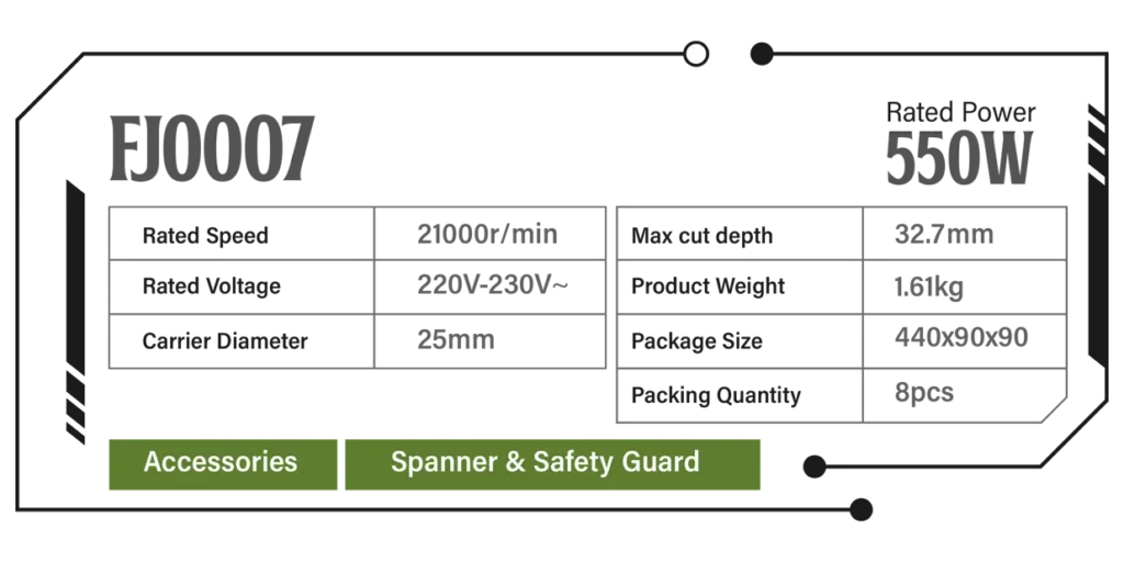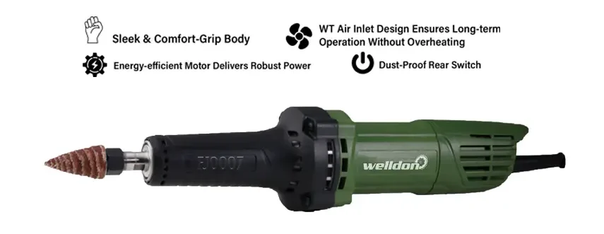 The WELLDON FJ0007 Electric Grinder is a powerful 550W tool designed for precise cutting and grinding applications. With an impressive 21000 r/min speed and a durable heavy-duty body, it delivers smooth performance, stability, and reliable operation for professional and industrial use.