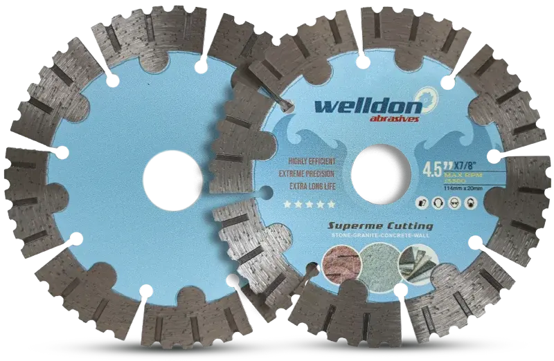 Universal for dry or wet cutting. WELLDON Diamond Cutting Blades are manufactured with high quality and durable heat-treated manganese steel and diamond.