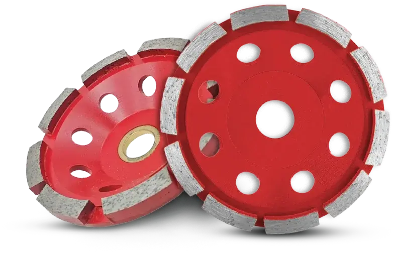 Designed to grind Diamond Cup wheels, concrete and field stones with double row segments.Suitable for grinding machines and angled grinding machines Dual segment configration allows faster material removal. Surface coating on concrete, screed and natural stone can also be used to remove adhesives and epoxies. Use soldered single sequential segments wet or dry for quick and smooth grinding with 5mm segment height. Rugged performance and operation with minim vibrations.
